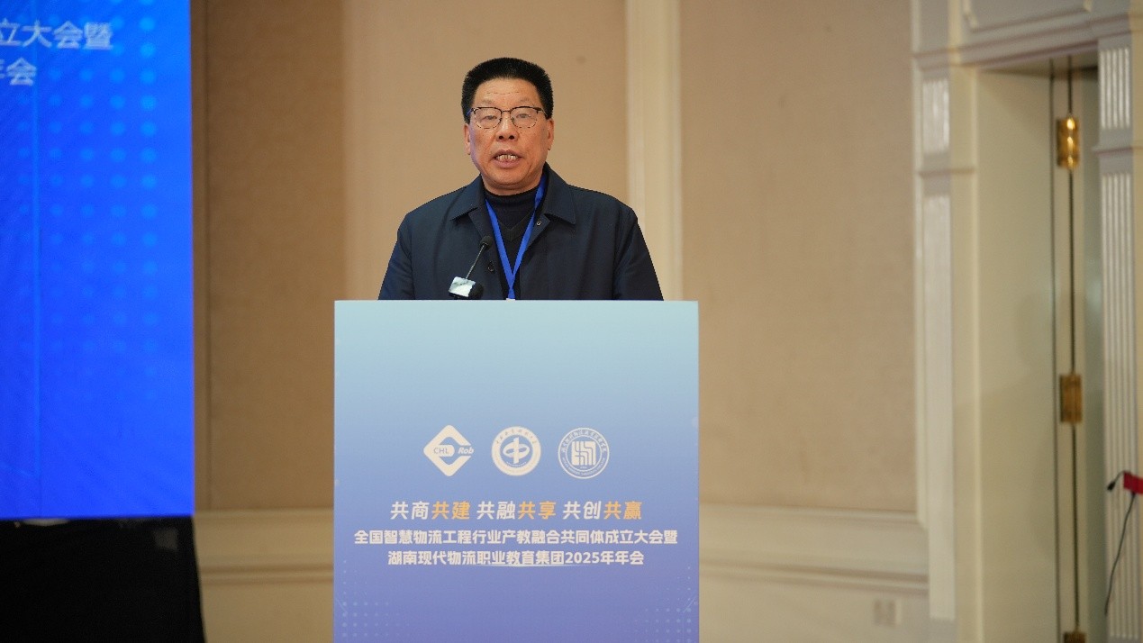 湖南省物流与采购联合会会长尹国杰在会上发表讲话。他指出,2024年物流行业受到了全社会的空前关注,相关政策文件的出台对物流人才培育提出了更高要求,湖南的物流职业教育应坚定走改革创新、转型升级之路,实现教育链、产业链、供应链、人才链与价值链的有机衔接。他还从精准开展物流人才需求预测、推动校企深度合作精准对接、加强物流实训基地建设管理、赋能物流产教融合协同发展等四个方面提出了具体建议。