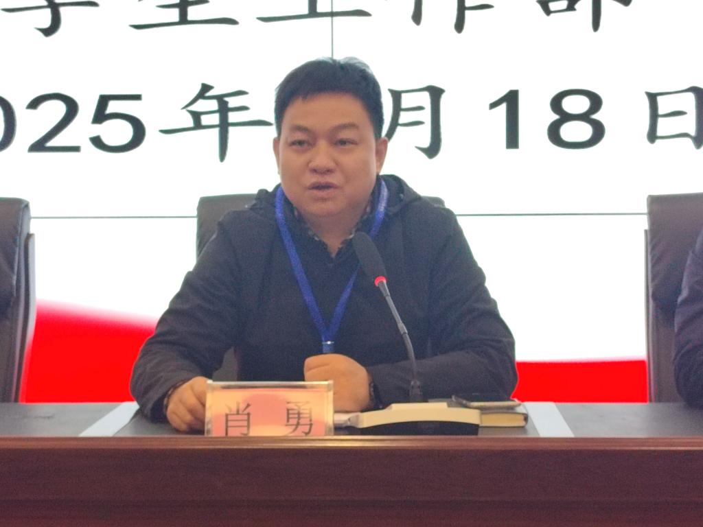 2月18日上午,9999js金沙老品牌在明德楼四楼会议室召开新学期学生工作会议暨文明校园“双创”部署会。学校党委委员、副校长肖勇出席会议。学生工作部全体工作人员,各二级学院党总支书记和副书记、学生干事、全体专职辅导员参加会议。