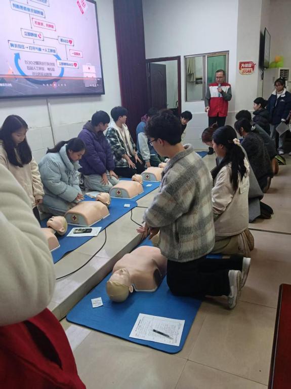 为提高学生的急救意识与技能,3月12日,校团委携手长沙市红十字会开展了一场生动且实用的心肺复苏急救校园培训活动,旨在传播急救理念,让学生掌握关键时刻能救命的心肺复苏技能,学校青年志愿者协会全体成员参与培训。
