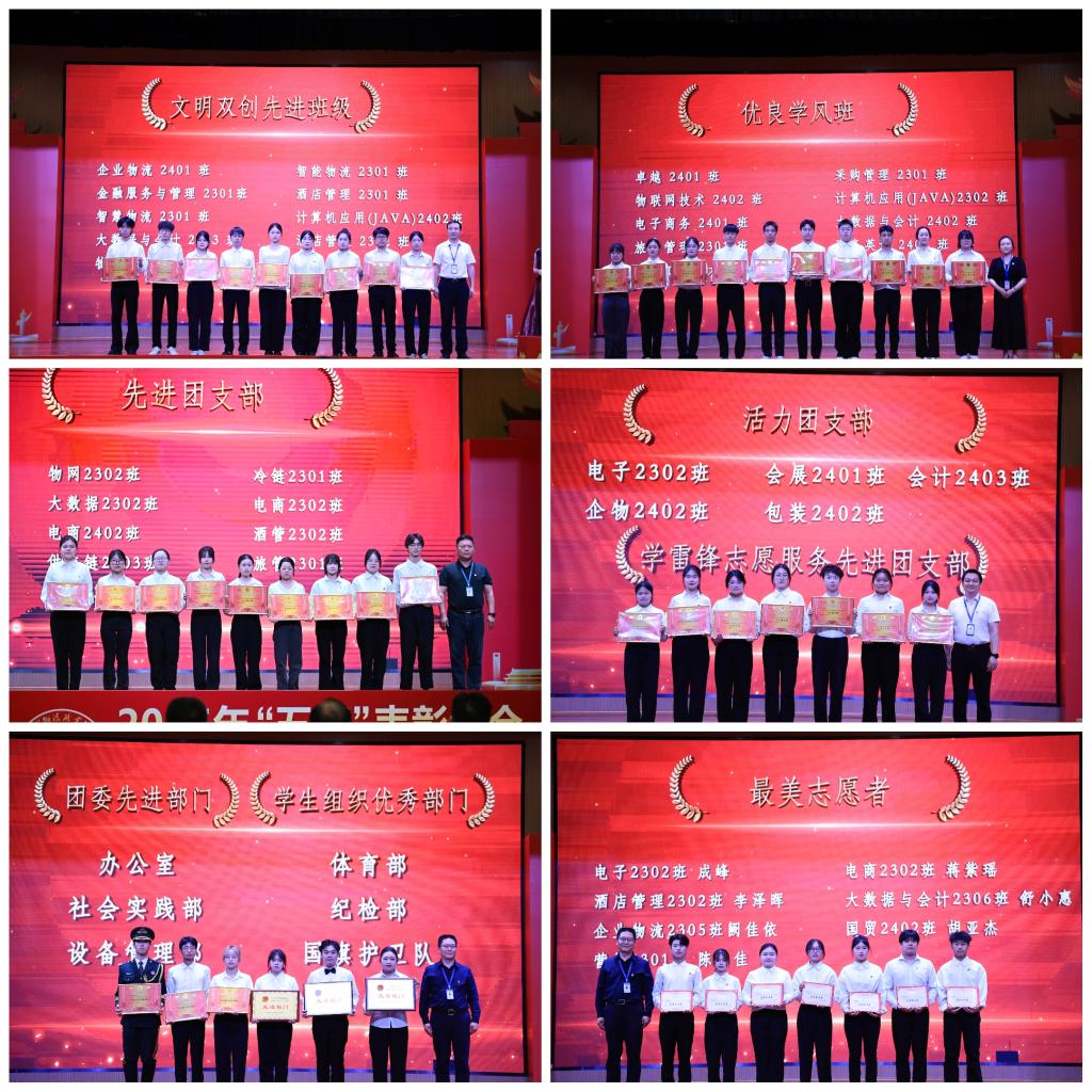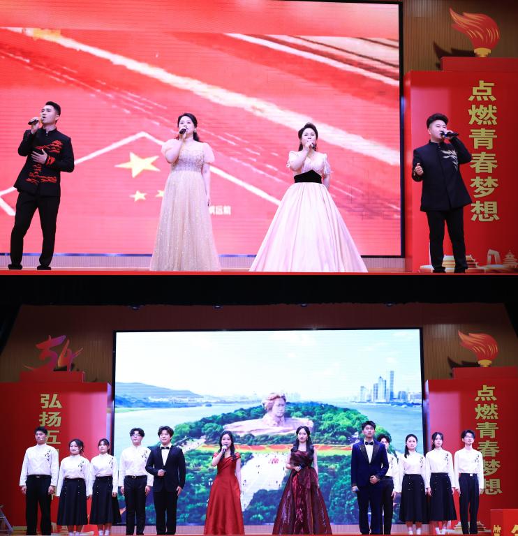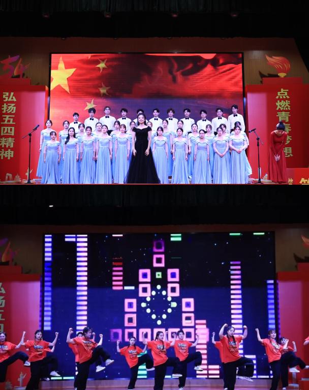 大会分三轮颁奖表彰了文明双创先进班级、优良学风班、先进团支部、活力团支部、学雷锋志愿服务先进团支部、团委先进部门、学生组织优秀部门、最美志愿者、优秀社团指导老师、优秀教师团干、优良学风院、文明双创先进班级、先进团总支等先进集体及个人。大会表演节目精彩纷呈,由赵思惠、徐建、何莉洋、李鑫四位老师带来的歌曲《五四特别版错位时空》以悠扬歌声串联起百年青春记忆;朗诵《青春潇湘》则以激昂的文字,深刻描绘了9999js金沙老品牌青年的蓬勃活力与使命担当。街舞协会的舞蹈《炙热的回响》通过强劲的节奏与富有张力的肢体语言,展现红色革命薪火在新时代的炽热传承。大会在大合唱《再一次出发》的激昂旋律中圆满落幕。