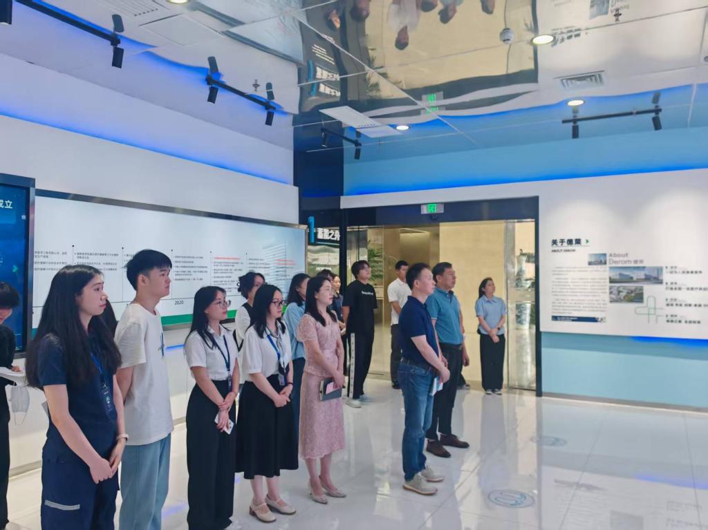 在德荣医疗人力资源总监罗征的陪同下,罗勇一行首先走进企业展厅。当电子屏实时更新医疗物资从订单生成到终端配送的全链路数据流转时,随行的学生不禁拿出手机拍摄智慧仓储管理系统的实时数据看板。通过企业讲解员的介绍,让大家直观感受到大数据、物联网技术如何重构传统医疗供应链。随后,走进智能仓储车间,垂直升降货柜、双向穿梭车等多种先进设备,感受到了智慧物流、智能仓储与医疗行业相结合所迸发的行业前景,更是感受到这些科技感十足的高端仓储设备,正通过数字化管理系统为传统医疗供应链注入精准高效的新保障。