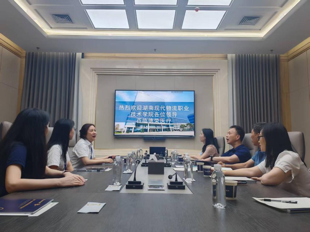 座谈会上,德荣医疗科技有限公司相关负责人对学院一行的到来表示热烈欢迎,并详细介绍了企业的发展历程、业务范围、企业文化和人才需求。他指出,学校在企业任职的26名毕业生中,7人已成长为公司业务主管和经理,这一数据不仅生动诠释了校企合作的丰硕成果,更是对学校人才培养质量的有力印证。罗勇详细介绍了学校的基本情况,并指出公司在医疗供应链领域的创新实践与学院“产教融合”的办学理念高度契合。他指出,企业在智慧物流和医疗物资仓储管理等领域的技术创新,为物流专业人才培养提供了鲜活的教学案例。此外,罗勇高度认可德荣医疗科技有限公司,明确提出将在学生就业、师资培养、订单班及实习基地建设等方面深化校企合作。