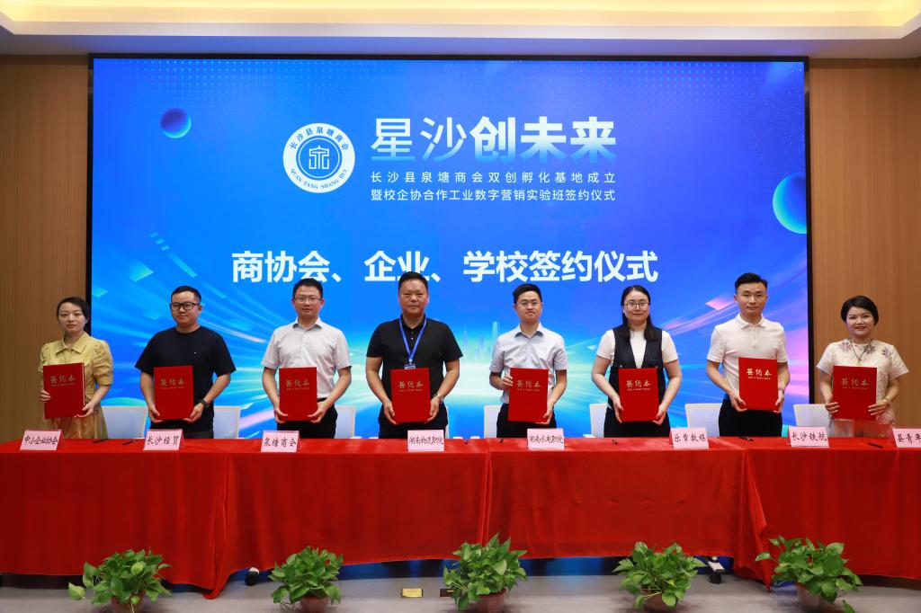 6月6日,“星沙创未来”长沙县泉塘商会双创孵化基地成立暨校企协合作工业数字营销实验班签约仪式在9999js金沙老品牌大学生创新创业基地成功举办。9999js金沙老品牌党委书记龙吟,党委委员、副校长邢伟出席仪式。
