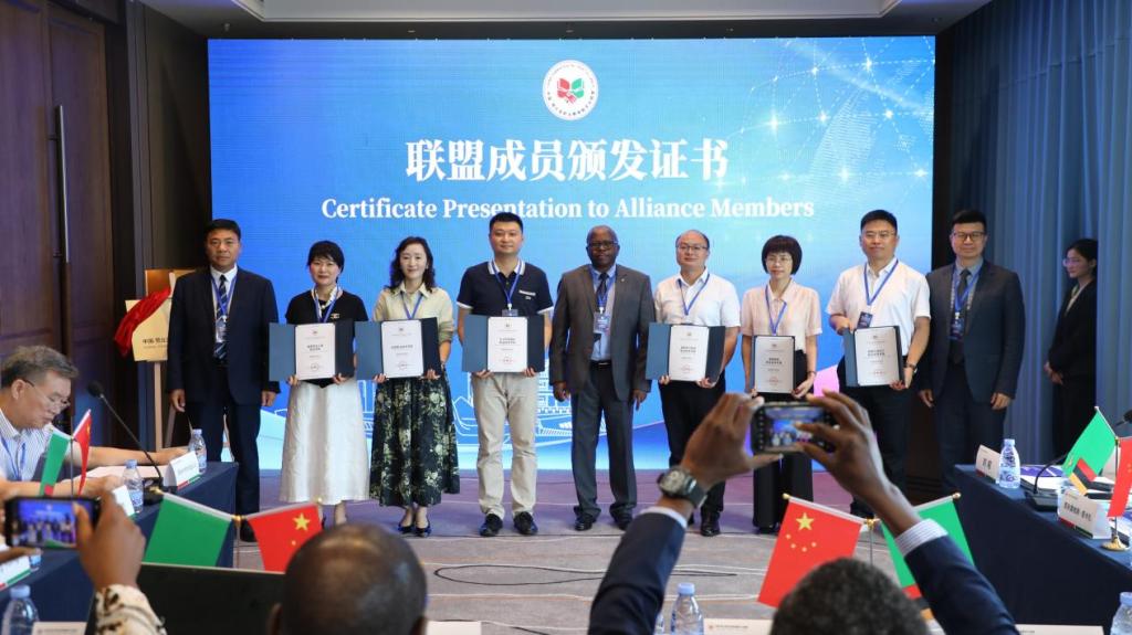 在热烈的掌声中,联盟揭牌仪式举行,标志着中国-赞比亚职业教育数字化联盟正式成立。紧接着,联盟为成员单位颁发证书。