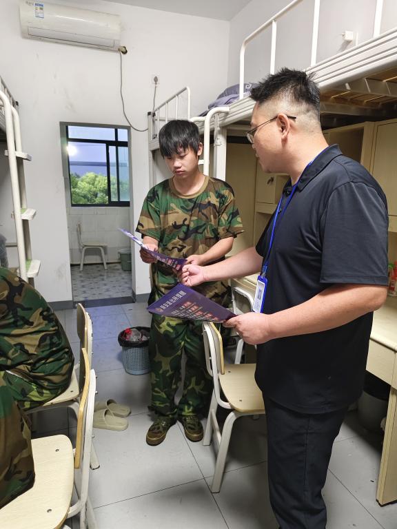 钢铁集结令。18时整,由学校保卫部、学生工作部48名学管老师和新安派出所警务人员组成的12支“安全特战队”手持排查台账按时在体艺馆前坪集合。分管安全工作的党委委员、副校长肖勇强调,违禁危险品排查队员要当校园安全的“啄木鸟”,违禁危险品排查必须像CT扫描一样精准,既要啄出隐患,更要把安全意识的种子播撒到每个学生心中。