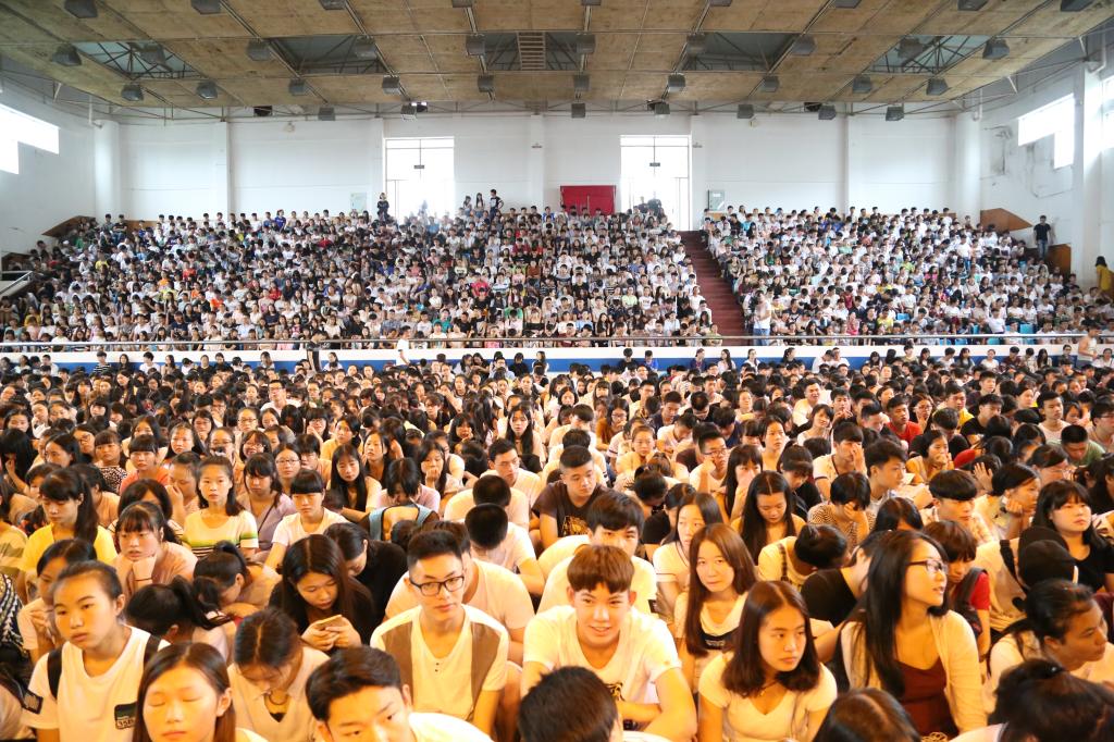 2016年9月6日上午,我院2016级2000多名新生齐聚体育艺术馆,参加2016级新生开学典礼。邓德艾院长为新生们上了大学第一课“爱意浓浓,做好自己——如何做一个新时代的大学生”。学院党委书记龙吟,纪委书记孟益民,副院长周务农、肖智清,院长助理张志湘、李菽林等出席,党委副书记、副院长姚建华主持典礼。