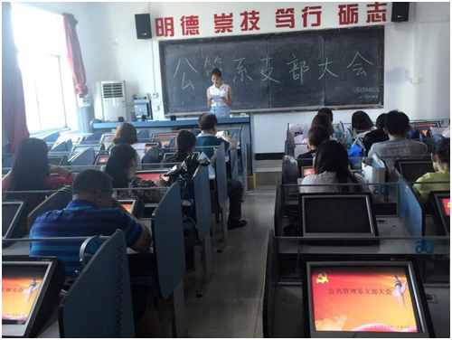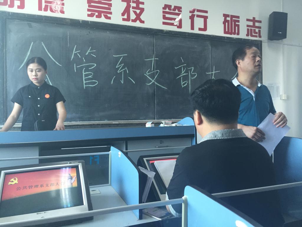 2016年7月9日上午8点30分,公管系学生党支部大会在科技楼405教室隆重召开,参加会议的有公管系支部书记赵翾老师、学生干事高行刚老师、团总支书记陈玮老师、辅导员陈诗师老师、肖兴老师、教师党员冯霞老师和姚继国老师,以及1502期预备党员和本次大会转正和发展的对象。