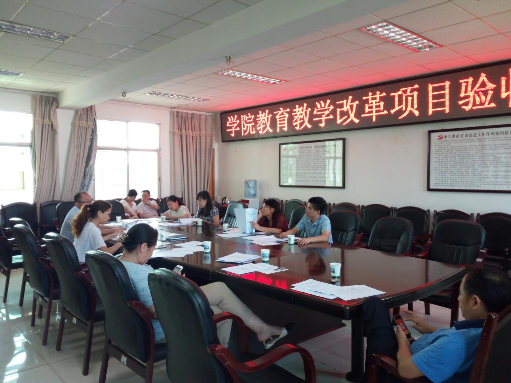 7月9日上午,学院在办公楼三楼会议室召开“2014年度教育教学改革项目”验收工作会议。会议由高职研究所所长夏红球主持,9位校内专家、6位项目主持人等参加会议。此次接受验收的院级教育教学改革项目有6个,分别如下: