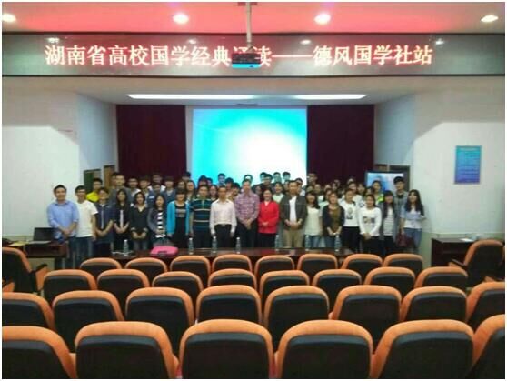 5月19日晚,由我院团委和湖南省高校国学联合会主办,我院德风国学社承办的湖南高校国学经典诵读巡回演讲第四站在我院图书馆学术报告厅举行。本次活动的主讲老师是湖南天责文化传播有限公司董事长、大汉汉学院常务副院长、国风习社社长彭钰涵老师。德风国学社指导老师欧阳昌雄老师、李菽林老师,中华舜文化万里行讲师团副团长刘能高教授、湖南省高校国学联合会主席李生宏等嘉宾出席了本次活动。