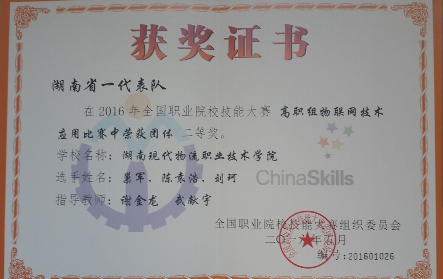2016年5月9日,全国职业院校技能大赛高职组“物联网技术应用”赛项在天津轻工职业技术学院隆重举行。大家努力了一年的成果在今天接受各级领导和大赛的检阅。我院巢军、陈袁浩、刘珂三位学生代表湖南一队参加全国物联网技术应用学生技能竞赛项目。邓德艾院长赛前动员、肖智清副院长亲临赛场、谢金龙、武献宇老师悉心指导,同学们历经拼搏,取得二等奖的好成绩,为学院、湖南省争得了荣誉。