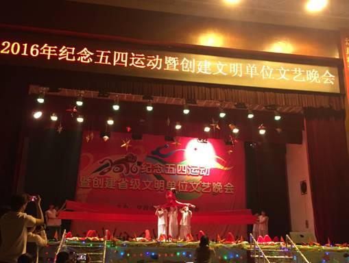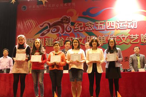 2016年4月27日晚7点,在体育馆举办了五四表彰和“纪念五四运动暨创建省级文明单位文艺晚会”,出席此次活动的领导有学院姚建华副院长、李菽林院长助理、学生处彭六生处长、李烁副处长、院团委马娜书记、徐建副书记、物管系刘松山书记、物信系米志强书记、物贸系伍瑛书记,学院几千名师生观看了晚会。