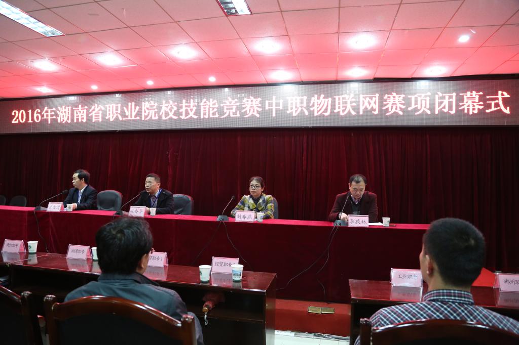 4月10日晚上9点,2016年湖南省职业院校技能竞赛物流职院赛点圆满完成中职物联网技术应用与维护、高职物联网技术应用两个赛项的竞赛,顺利闭幕。省派巡视员刘婕、省派联络员刘春燕、高职组裁判长吴伶、中职组裁判长成奋华、我院副院长肖智清出席闭幕式,院长助理李菽林主持会议。