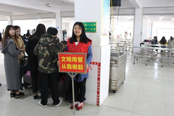 在这雷锋精神洒满校园的时光中,学生处、团委特组织志愿者食堂文明就餐劝导活动,活动由院团委、学生会、宿管会、思政会以及各系团总支轮流牵头组织。活动期间,志愿者们积极号召大家礼貌排队,餐后提醒就餐者把餐盘放到附近的餐车上,方便下一位就餐者,对于浪费严重的同学,志愿者们好言相劝,宣传节约理念。活动期间许多志愿者都是饿着肚子上岗,但能为大家创造一个良好的就餐环境,能促使大家文明行为养成,能为学院创建文明单位做贡献,虽说身体辛苦,但内心感到无比开心与骄傲。