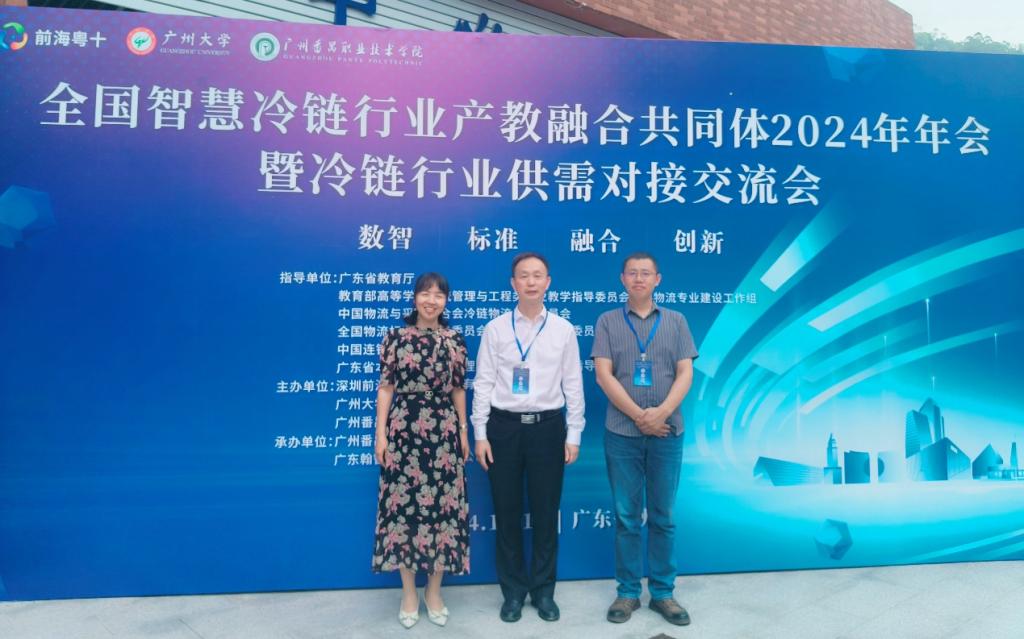 近日,由广州大学、广州番禺职业技术学院、深圳前海粤十信息技术有限公司共同主办的全国智慧冷链物流行业产教融合共同体2024年年会暨冷链行业供需对接交流会在广州番禺召开。湖南现代物流职院党委委员、副校长罗勇应邀出席,物流工程学院院长杜丽茶、冷链物流技术与管理专业带头人花开太参加会议。