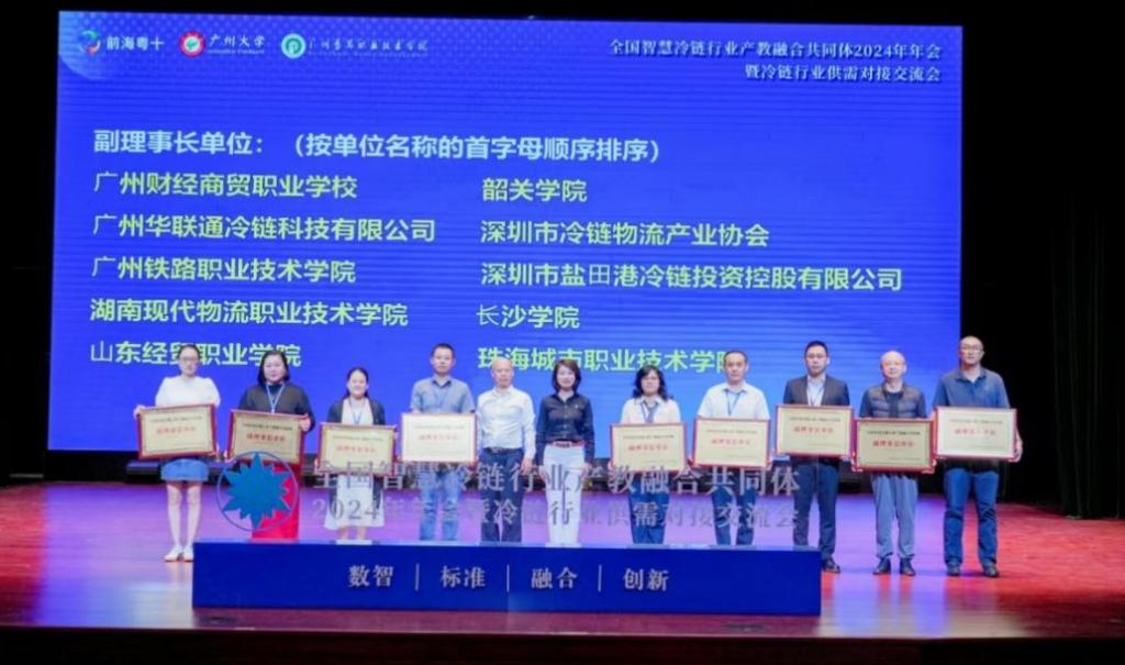 近日,由广州大学、广州番禺职业技术学院、深圳前海粤十信息技术有限公司共同主办的全国智慧冷链物流行业产教融合共同体2024年年会暨冷链行业供需对接交流会在广州番禺召开。湖南现代物流职院党委委员、副校长罗勇应邀作为重要嘉宾出席,物流工程学院院长杜丽茶、冷链物流技术与管理专业带头人花开太参加会议。
