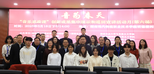 “学习雷锋好榜样,忠于革命忠于党……”熟悉的红色旋律在湖南现代物流职院大讲堂回荡,一场别开生面的“音乐思政课”让现场师生沉浸于雷锋精神与时代思考的交响之中。近日,湖南现代物流职院举办“音为春天”音乐思政课创新成果巡展(第六场),通过艺术化形式让思政教育焕发新生。