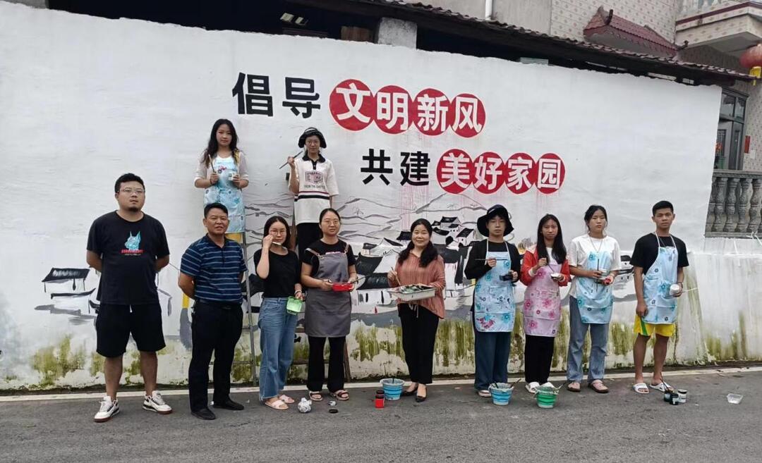 2022年暑期,第一任工作队长肖和山联合学校“物兴包装”团队打造乡村振兴艺术墙绘,以“产业兴旺、生态宜居”为主题,将20余幅彩绘融入村民房屋外墙,成为大桥村一道亮丽的风景线,也为孩子们的学习生活增添了多彩情趣。随后每年暑假,大学生暑期“三下乡”活动为孩子们带来防溺水情景剧、心理健康团辅、非遗剪纸体验等课程,让乡村儿童在寓教于乐中健康成长。