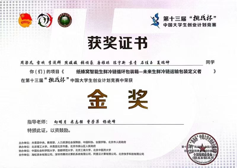 她聚焦生鲜农产品运输痛点,主持研发“纸蜂窝生鲜冷链循环包装箱”,破解农产品运输“最后一公里”难题,获2023全球物流技术大会创新案例。在蜂窝仿生技术智能包装箱课题研究过程中,她带领学生参与企业实地考察,从材料测试到结构优化,全程实践。因其优异表现,她获评2021年度中国包装联合会行业优秀奖。