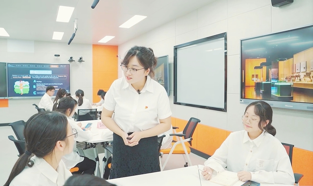 课堂上,她总能将时事热点与前沿信息融入英语教学,用鲜活的案例引发学生的思考。她鼓励学生大胆表达、积极实践,英语课上常常充满欢笑与讨论。她相信,语言不仅是知识的载体,更是思维的工具。学生说:“戴老师的课上总会把特别难的知识点讲的通俗易懂。这种深入浅出的方式,让我们对英语学习越发感兴趣。”课堂外,她坚持学习,积极探索职业教育外语教学,创新育人模式,聚焦产教融合,为培养高素质应用型国际化人才贡献力量。