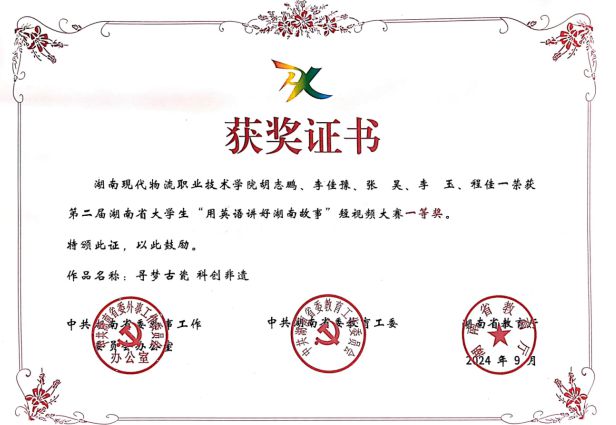 竞赛是检验教学质量的一杆标尺。2024年,在湖南省大学生“用英语讲好湖南故事”短视频比赛中,她和团队教师带领学生以镜头为笔、以英语为桥,开启了一场跨越时空的文化对话。她手把手指导学生设计采访提纲,剪辑视频片段,将专业词汇转化为生动影像语言,将“敢为人先”的精神内核转化为全球受众可理解的文化密码。当作品《寻梦古瓷 科创非遗》斩获省级一等奖时,师生相拥而泣。这不仅是一次竞赛胜利,更是她们“以赛促教”理念的生动注脚。她说:“当学生们从‘哑巴英语’蜕变为国际表达的自信者,从教科书的囚徒成长为用英语解码湖湘文化的讲述者,这就是最大的收获。”