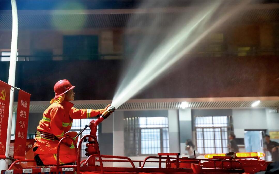 20时12分,教学楼二层模拟因地震导致“电路短路”,突发“火情”,浓烟迅速蔓延。随着消防警报拉响,该校应急指挥中心立即启动火灾预案。各楼层疏散组队员、引导员迅速就位,组织师生用毛巾捂住口鼻,沿消防通道弯腰撤离。消防广播同步播放疏散提示。消防车警笛呼啸赶来增援,消防员和校内灭火组队员形成联动,快速用高压水枪喷水压制外墙蔓延的“火蛇”。仅3分钟,五层教学楼内100余间教室3000多名正在晚自习的师生闻令而动,完成快速安全撤离,并在田径运动场安全区集结,各班级逐级上报人数,确保无一人员遗漏,全程无拥挤、无滞留,创下该校夜间疏散演练效率新高。疏散演练总指挥、副校长肖勇点评指出,疏散演练成功得益于百间教室以二级学院为单位、分层分级管控的“网格化责任体系”与每层安排疏散组、每个楼梯拐角配备引导员的“疏散安防矩阵”的深度融合,同时强调,防灾减灾不是“一次性工程”,必须常抓不懈,该校将把地震避险、火场逃生疏散演练常态化纳入每年的防灾减灾宣传周、新生入学教育。