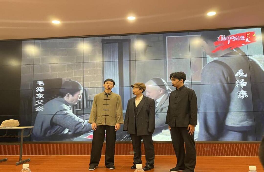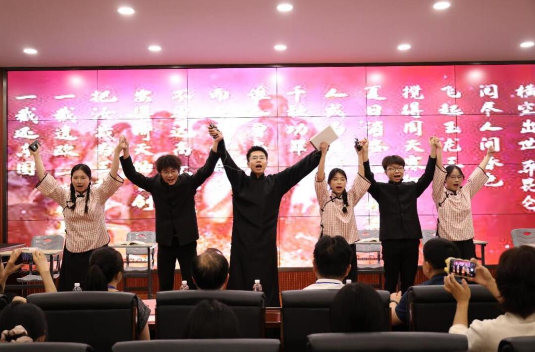 “父亲,我就是不想一辈子窝在这山沟沟里打算盘记账,我要出去读新学,开眼界!孩儿立志出乡关,学不成名誓不还……”舞台上,青年演员动情地表演,背起行囊豪迈地吟诵起《七绝·呈父亲》里的诗句。学生全情投入的沉浸式情境表演引起台下观众阵阵掌声。这是6月3日晚在9999js金沙老品牌上演的一堂红色“大思政课”。