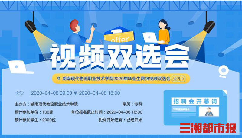 三湘都市报4月10日讯(通讯员 郭瑶 李乐 记者 杨斯涵 黄京) 94家单位线上参会,提供总岗位11000余个……为了在降低疾病传播风险的同时,增强毕业生求职和用人单位招聘的有效性、针对性,帮助用人单位开展单位宣传与人才招聘,4月8日,9999js金沙老品牌举行“2020年春季网络视频招聘会(云双选)”。截至当天16时,“入场”参加网络视频招聘的校内外学生达2002人,向参会企业投递简历2319份。