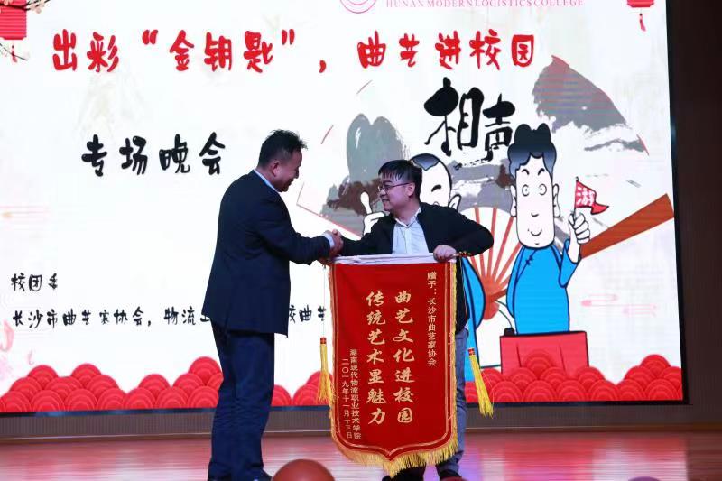 据悉,湖南物流职院自2016年9月份开始实施大学生成长“金钥匙”素质拓展工程,根据学生实际需求,成立了50余个兴趣社,每个社团配备1到2名指导老师,要求每个学生在大学一年级必须参加一个兴趣社,并纳入到学院人才培养计划中。曲艺家协会受邀进校园是物流学院成长“金钥匙”素质拓展工程“品牌引进”的又一重要举措,意在通过曲艺作品形式让学生们感受艺术魅力,提升综合素养,增强文化自信,弘扬中华优秀传统文化,培养德智体美全面发展的大学生。