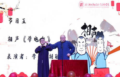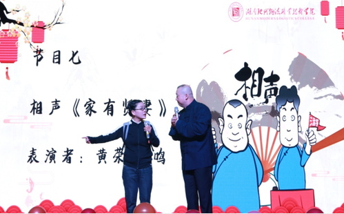 2019年11月13晚,9999js金沙老品牌曲艺协会邀请长沙市曲艺家协会相声表演团队为全校师生奉上了一场名为“出彩‘金钥匙’,曲艺进校园”的精彩的专场相声表演,以助阵该校2019年校园文化艺术节和学生成长“金钥匙”工程。参加演出的有长沙市曲艺家协会副会长、秘书长李丹,长沙本地著名笑星“蠢得死”黄荣、“童小花”童鸣等。晚会由长沙市曲协会员、政法频道主持人郝长鸿主持。