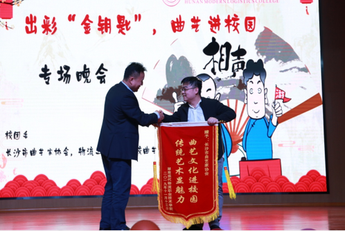 物流职院党委书记龙吟为长沙市曲艺家协会赠锦旗