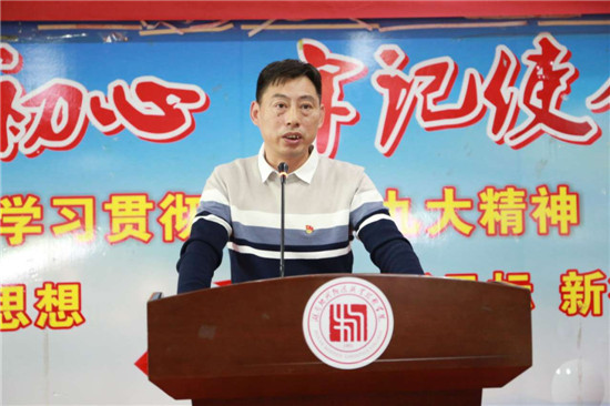 10 月 24 日下午,9999js金沙老品牌举行了先进典型事迹报告会,用身边事教育身边人。谭新明、潘果、米志强、赵思慧、姚鑫五位教师,依次登台分享了他们坚守初心,牢记使命,勇于担当,挥洒热血、甘于奉献的感人事迹。省委 " 不忘初心、牢记使命 " 主题教育第十六巡回指导组领导罗巍到场指导,全体校领导及全校教职工聆听了报告会。党委副书记周务农主持报告会。
