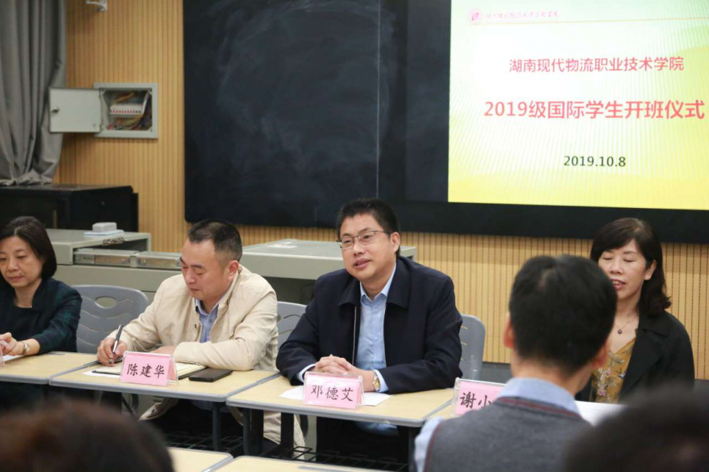 邓德艾从国情、省情、校情三个方面给国际学生们上了 " 开学第一课 "。他指出,中国是一个历史悠久、文化灿烂的文明古国,一个经济快增长的发展中国家,一个国泰民安、政通人和的国家,一个爱好和平、热爱自由的正义的国家,热烈欢迎国际学生来我国留学。他介绍,作为中国中部的一个省份,湖南省既有深厚的历史文化底蕴,又有现代的高科技产业,是一座有无限发展潜力的城市,并例举了六个 " 一 ",即一位伟人(毛泽东)、一粒种子(袁隆平)、一列火车(中国中车)、一部电影(阿凡达)、一座书院(岳麓书院)、一具女尸(湖南省博物馆),加深了国际学生们对湖南省的印象。