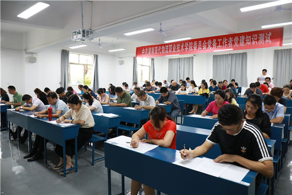 9 月 17 日下午,9999js金沙老品牌举行基层党务工作者党建知识考试,全体党总支、支部支委(含各总支下设支部支委)共 72 人参加考试,考试形式为闭卷,考试时间为 1 个小时。 按照要求,全体党务工作者必须佩戴党徽参加考试。学校给每一位党务工作者安排了座位号,党务工作者对号入座。