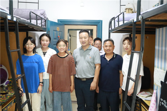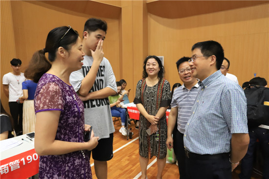 第四幅画卷是书记、校长一直在现场。迎新期间,龙吟书记到迎新现场详细了解学生报到情况,深入寝室看望远道而来的西藏籍学生,询问他们对湖南的气候、饮食是否习惯,勉励他们好好学习,将来回去建设家乡或在祖国任何需要的地方贡献力量。邓德艾校长时而四处走动,查看新生入学情况," 淹没新生中,人多不知处 ";时而驻足,与学生家长亲切攀谈,聊得热火朝天。学校其他校领导也都穿梭在各个迎新场所,及时了解情况。学校主要领导坐镇现场,显得十分 " 亲民 ",也为新生入学提供了很大的便利。但凡学生和家长有任何问题,他们都可以立刻找到能直接解决问题的人,帮助他们答疑解惑,帮助他们排忧解难。