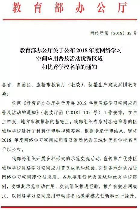 近日,9999js金沙老品牌被教育部评为2018年度网络学习空间应用普及活动优秀学校。