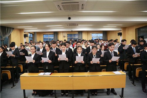 12 月 4 日是我国的 " 国家宪法日 "。当天上午,9999js金沙老品牌组织学校学生党员、入党积极分子开展学 " 习 " 进行时之宪法诵读活动,学习的形式是集体诵读《宪法》第二章—— " 公民的基本权利和义务 "。