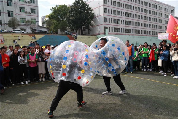 运动会的比赛项目设定也着眼运动与趣味的融合。运动会设计了许多带趣味性的项目,尤其是教师运动会,几乎全是趣味性项目,如毛毛虫、一脚定乾坤、童心未泯等。