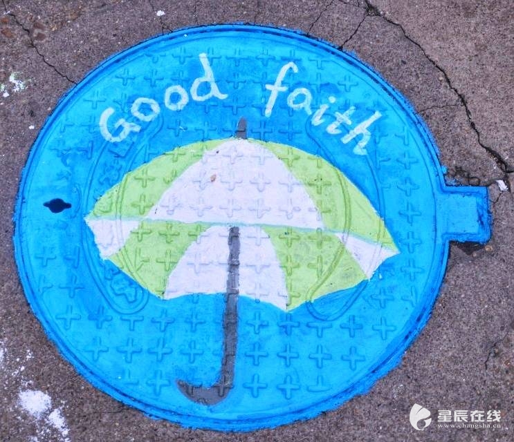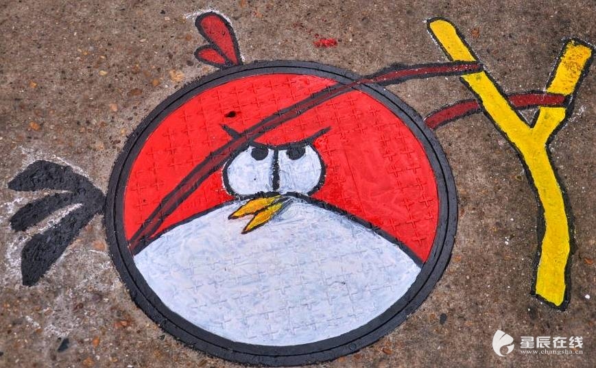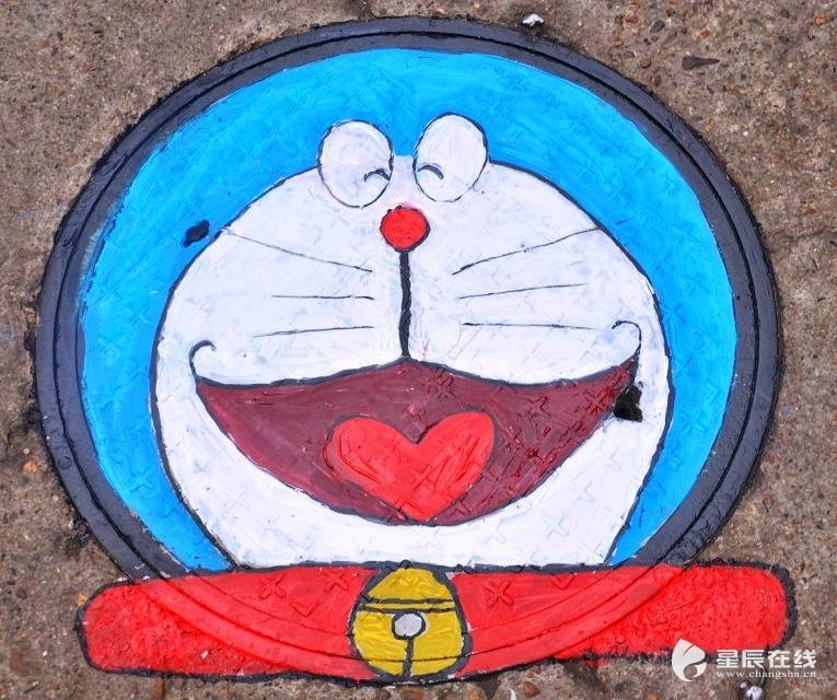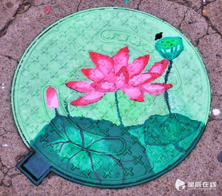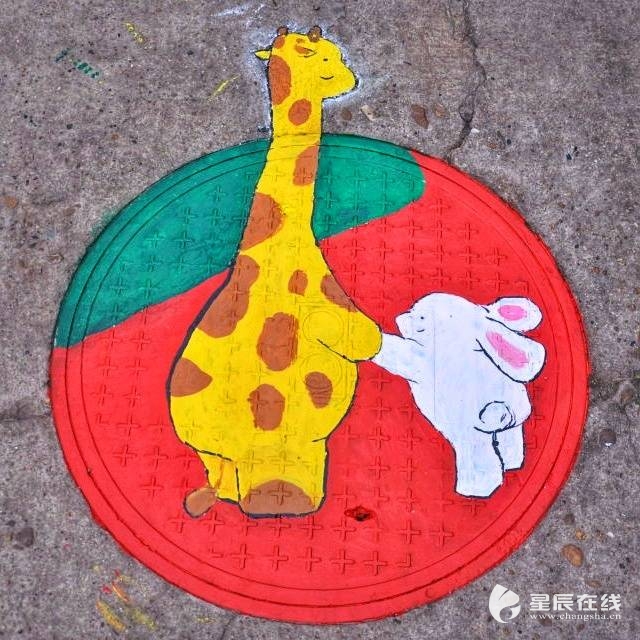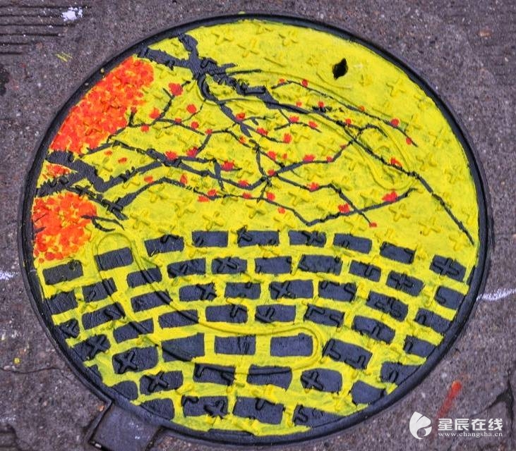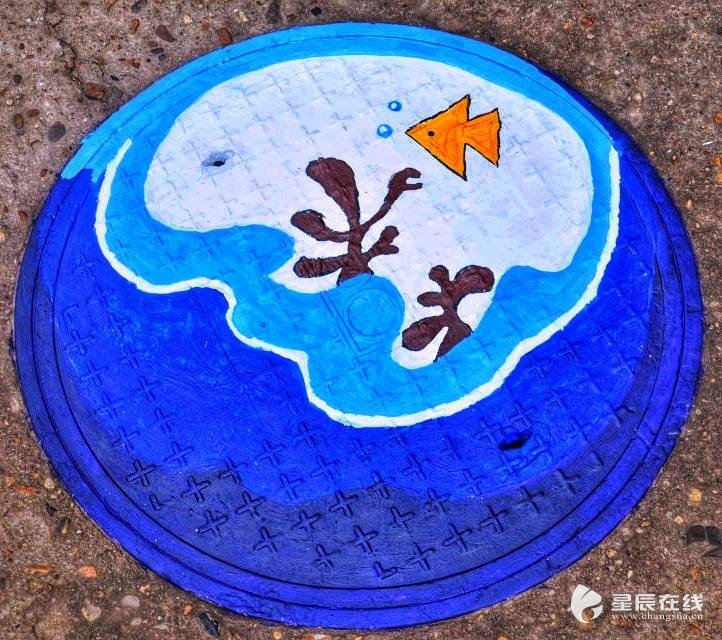 (单调的井盖上作画之后,变得多姿多彩起来。)