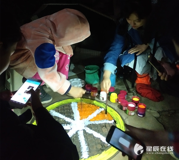 (学生们正在井盖上进行创作。 图片均由通讯员提供)