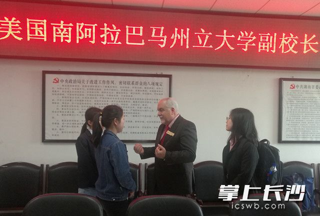 长沙晚报掌上长沙3月30日讯 (通讯员 邓颖颖 记者 徐媛) 3月28日上午11点,美国南阿拉巴马州立大学分管国际事务副校长理查德·卡特博士、美国教育科技国际公司总裁黄晓菲等一行六人到访物流职院进行国际合作项目洽谈。该校副校长陈建华、国际合作学院院长谢小艳等热情接待了理查德·卡特博士一行。双方就语言认证、课程认证、学分互换、课程体系等方面展开了探讨。会上,双方签订了合作办学谅解备忘录,理查德·卡特博士还与学校人文艺术学院商务英语专业12位学生代表进行了交流。