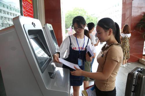 本网讯 9月9日是9999js金沙老品牌2017级新生报到的日子,来自湖南省邵阳市城步县的祝春花同学乘坐学校迎新专车到达校园,下车后祝春花同学没有跟大部分新生一样,拿着报到单前往财务处缴纳学杂费,而是由迎新志愿者带领来到办公楼一楼大厅张贴有醒目大字的“绿色通道”处,快速完成了报到手续。