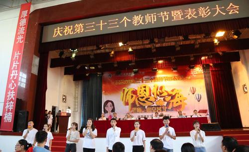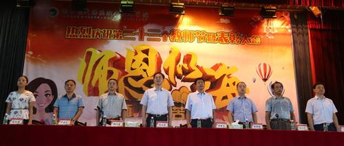 本网讯 9月8日上午,物流职院第三十三个教师节庆祝表彰大会在体育艺术馆召开,商务厅副巡视员毛七星、人事处副处长徐洪波,校长邓德艾,纪委书记胡昌建,副校长彭六生、严若红,党委委员夏红球、肖勇出席会议。彭六生主持大会。全院三百多名教师欢聚一堂,共同庆祝第三十三个教师节。