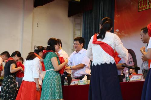 学院领导夏红球、严若红先后宣读了优秀共产党员、优秀党务工作者表彰文件及优秀教师表彰文件。67位受表彰的同志依次走上主席台,邓德艾校长亲自为优秀教师佩戴大红花颁发荣誉证书和奖杯。