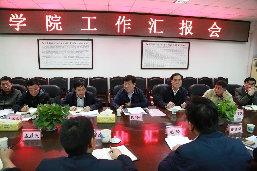 实地考察结束后,该院党委书记龙吟、院长邓德艾就学院建设发展等工作情况作了详细汇报。近年来,学院扎实开展“两学一做”学习教育,牢固树立“四个意识”,自觉用习总书记系列讲话精神武装头脑,指导工作,以特色创品牌,以开放促发展,全院上下团结和谐,发展势头良好。一是办学实力明显增强,二是教学科研成绩突出,三是师资队伍得到加强,四是立德树人成效显著,五是卓越院校建设基础良好,六是党建工作同步推进。