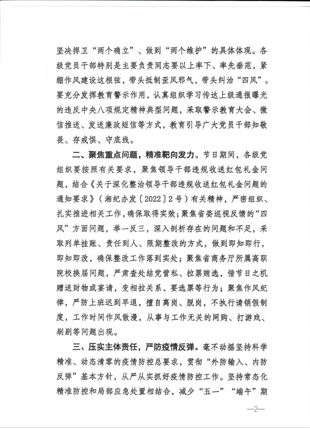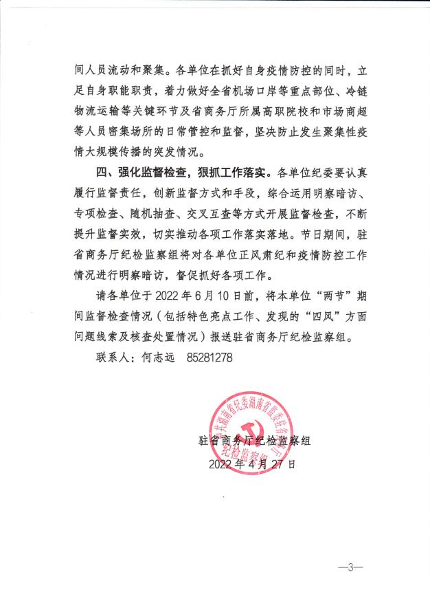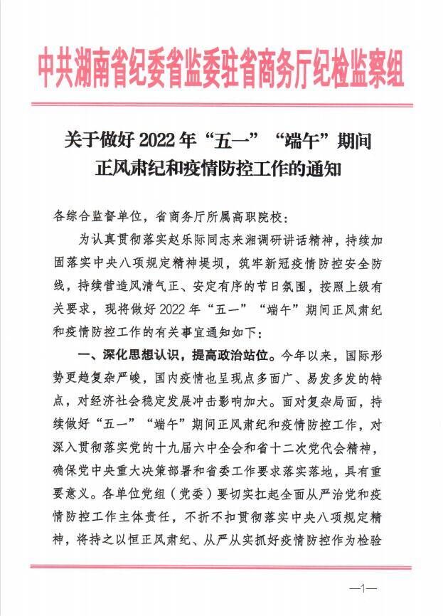 转发省纪委省监委驻省商务厅纪检监察组《关于做好2022年“五一”“端午”期间正风肃纪和疫情防控工作的通知》
