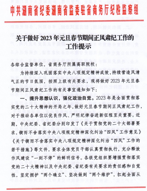 关于做好2023元旦春节期间正风肃纪工作的工作提示