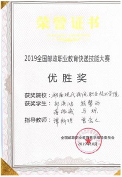 3.全国邮政职业教育快递技能大赛优胜奖。