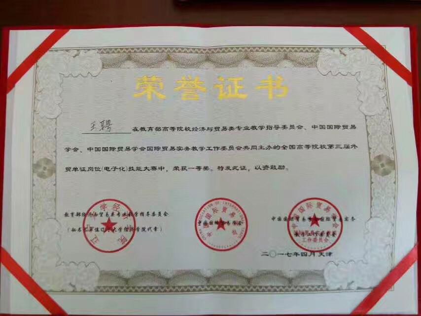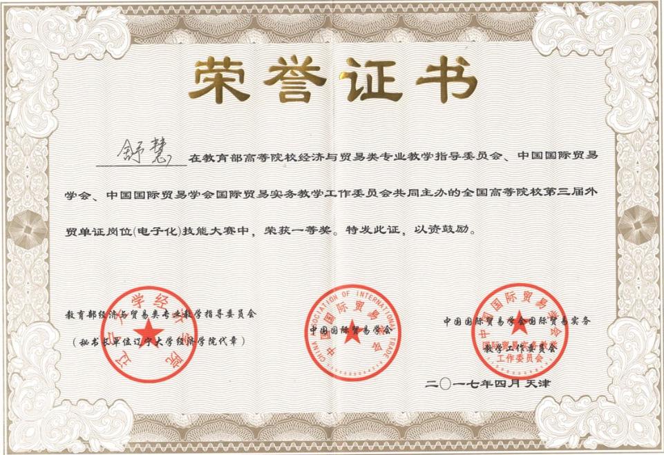 全国高等院校(第三届)“智欣联创杯”外贸单证岗位(电子化)技能大奖赛全国一等奖国
