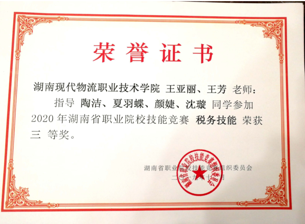 5、2020年湖南省职业院校技能(税务技能)竞赛三等奖