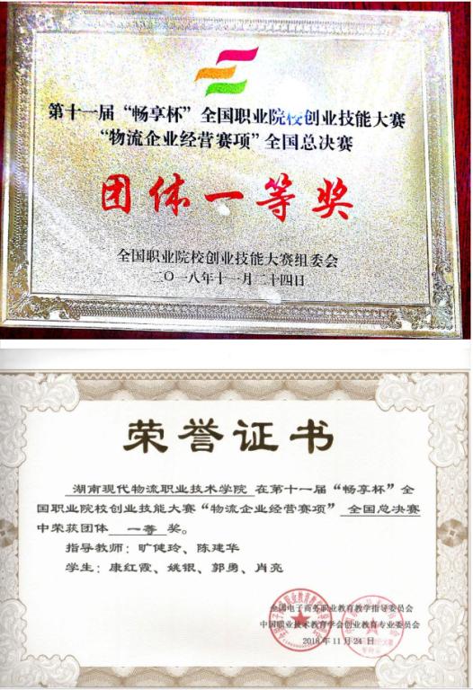 1.第十二届“畅想杯”全国职业院校创业技能大赛“物流企业经营赛项”技能竞赛全国总决赛一等奖(已四连冠)